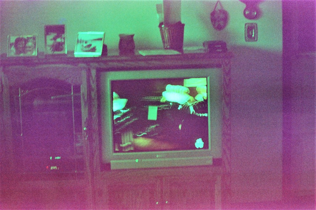 To be honest, the subject/content in each frame of found film is only half the fun of developing it. The other half of the fun is enjoying the unexpected color shifts, light leaks, artifacts of careless storage, and the passage of time. So I sent off this roll to my friends at Nice Film Lab in Brooklyn, to see what was on this roll of Kodak MAX 400. I was not disappointed or surprised — it was heavily shifted purple-green, with what appears to be a fogging or light leak from someone opening the camera accidentally — a fabulous result!