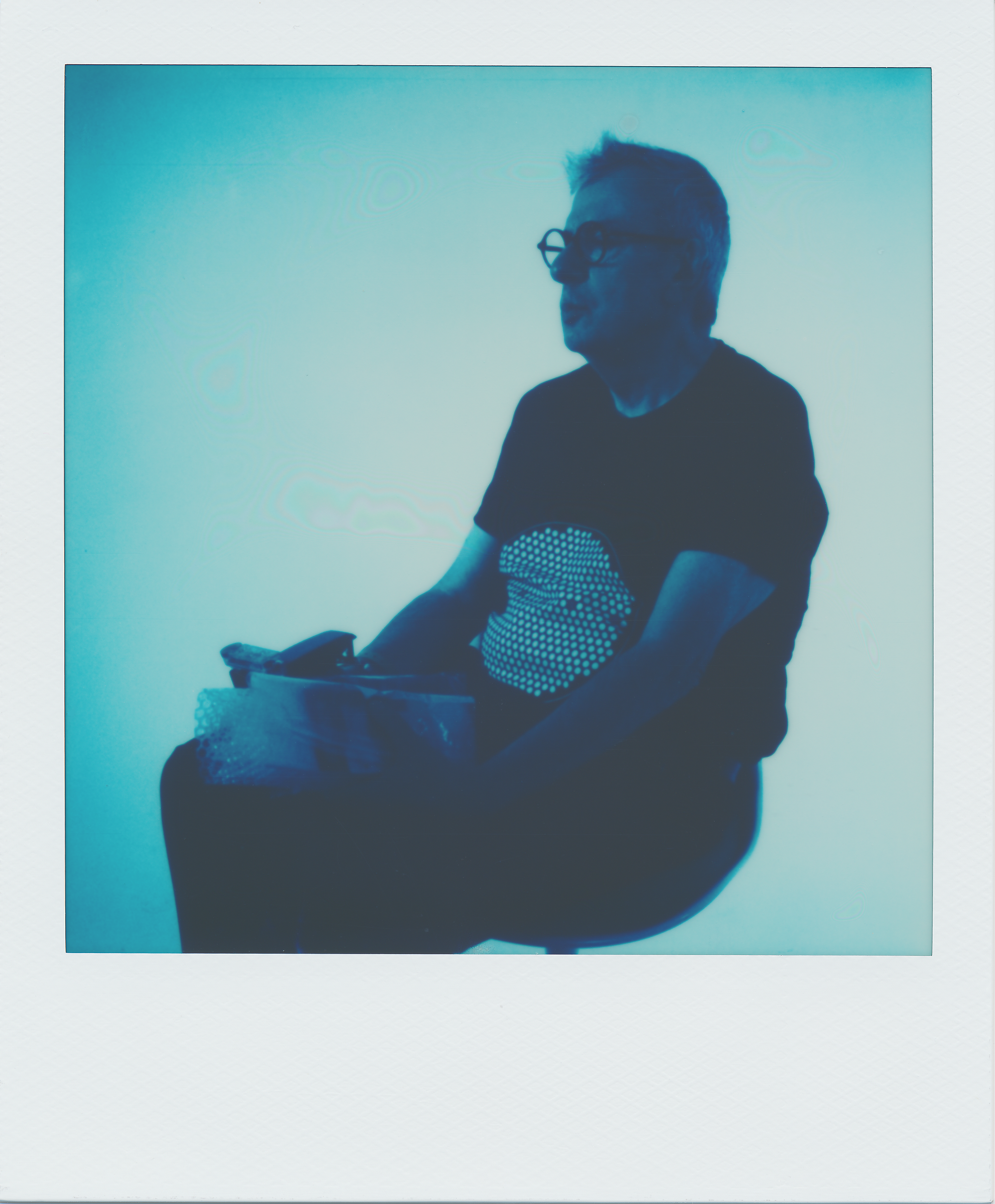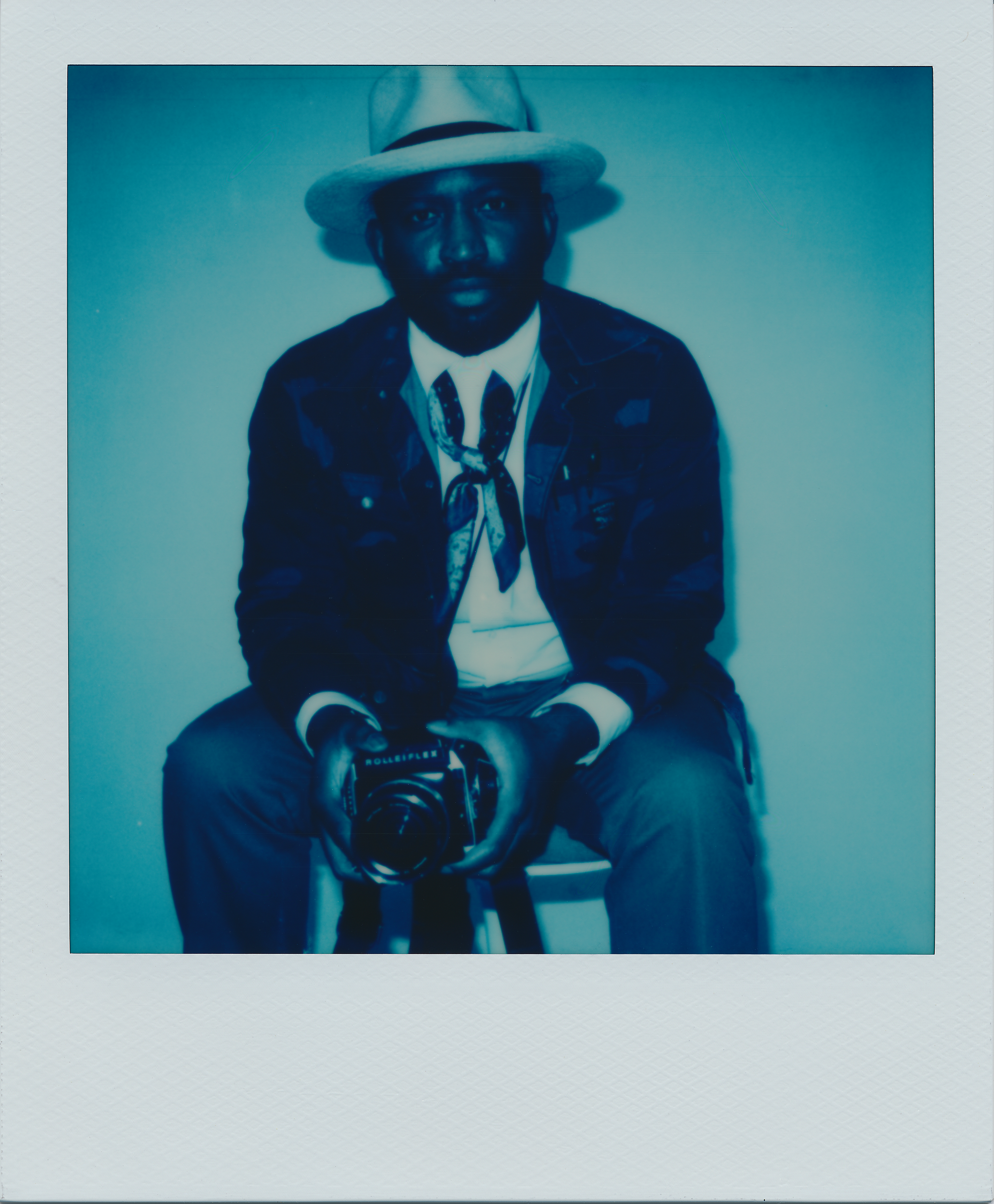 - Row 1: Naeem Douglas and his “fussy” Rolleiflex film camera shot with a Polaroid SLR 680 SE on Blue 600, plus one I took of him on Color 600 using the “Big Roid” camera (see below).