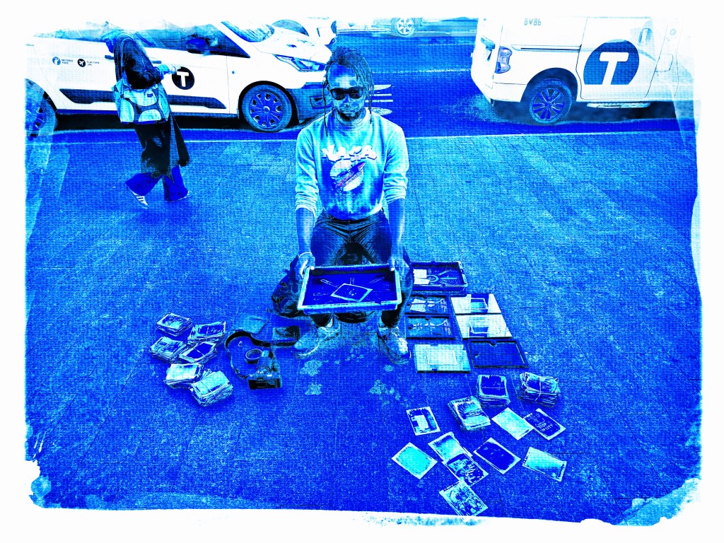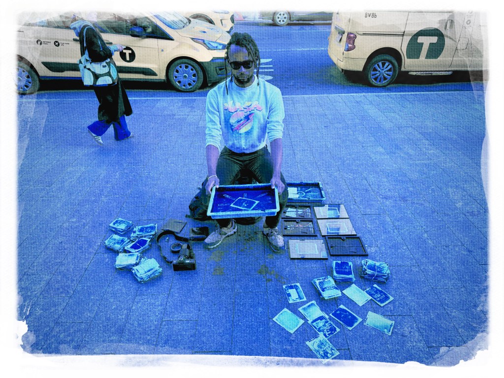 I planned to give Kavon the shots I took of him, and to promote his work by posting on his behalf. Sadly, since that day in front of The MET, I have searched in vain for Kavon’s contact info and social feeds. Finally, I posted the photos to a Cyanotypes group on Facebook, and was delighted to find — between all the praise and interest from group members around the globe — two people in the US had seen him in the same spot, and bought one of his cyanotypes! But nobody had (or offered) his contact info…