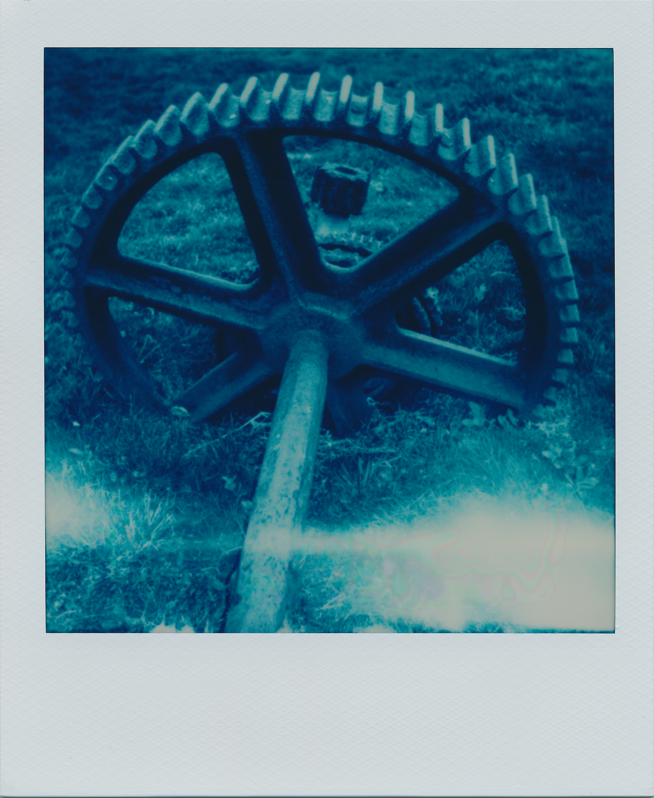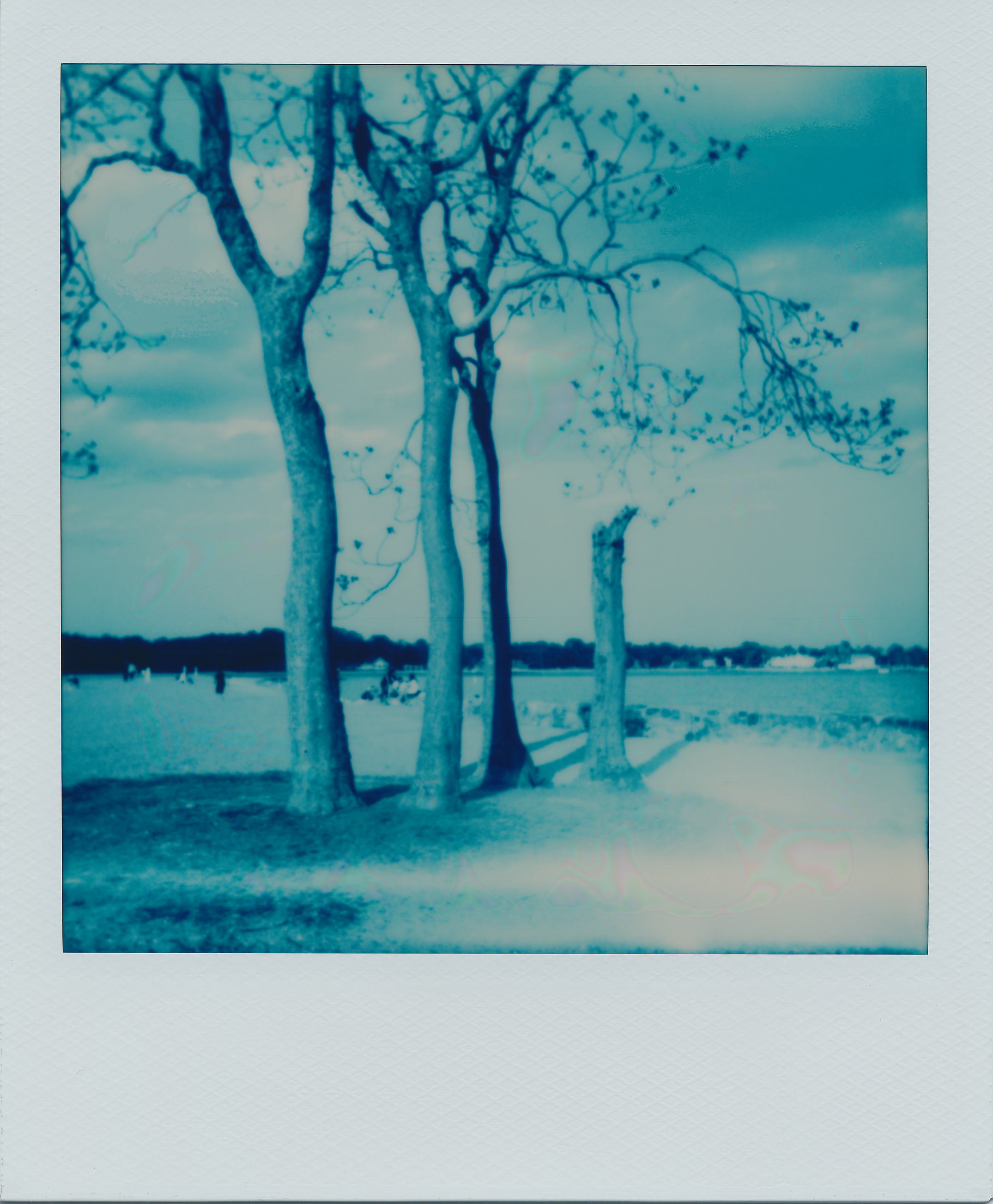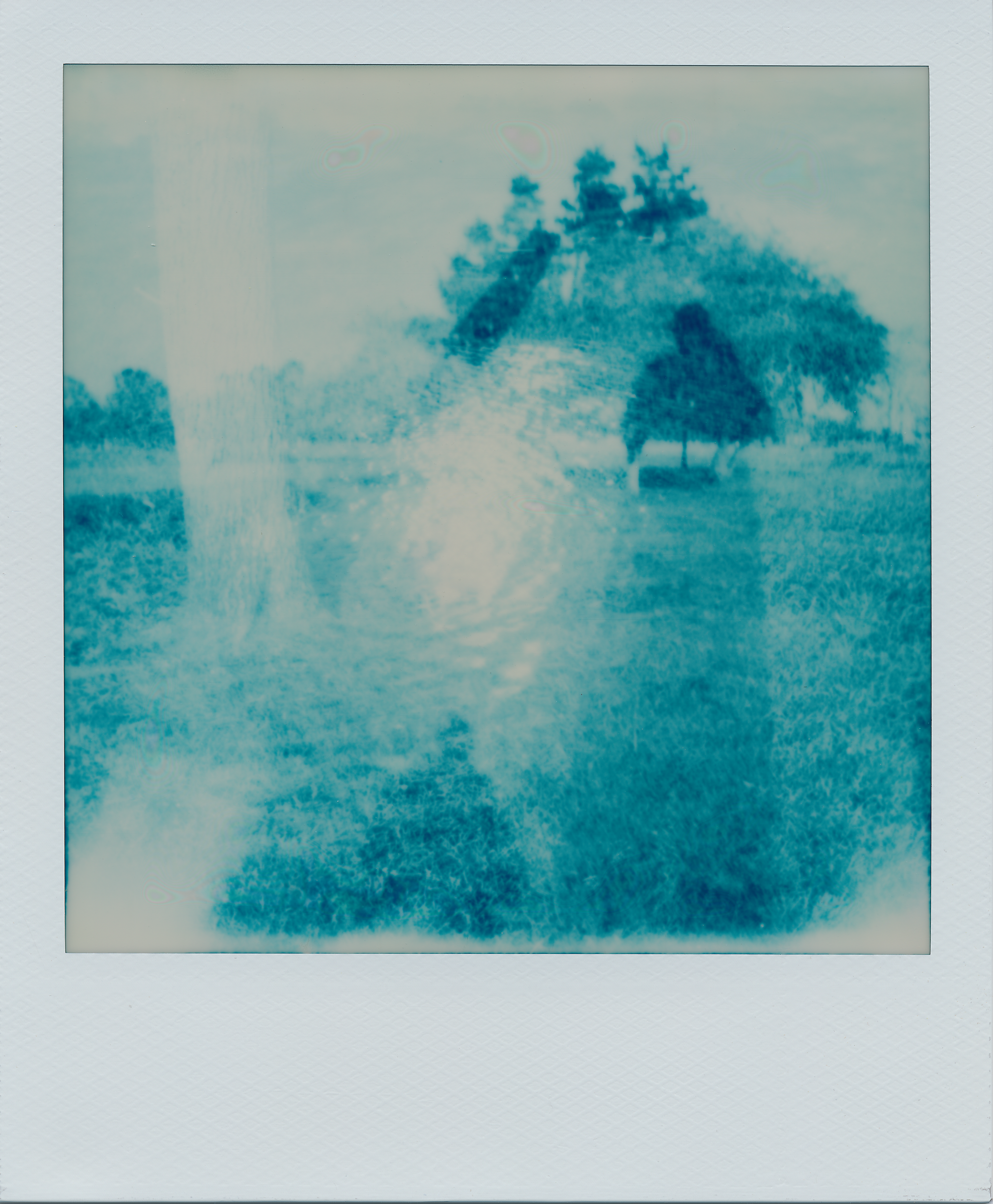 Two weeks later, my fertile imagination came up with an idea to shoot my next pack of Blue 600 film in a blue camera. Why not? Should be fun… So, I grabbed an untested, vintage, blue Polaroid One600 “classic” (original version) camera from my shelf and headed out on a cool spring day. As you can see in the test photos below, I got some unexpected and interesting results!
