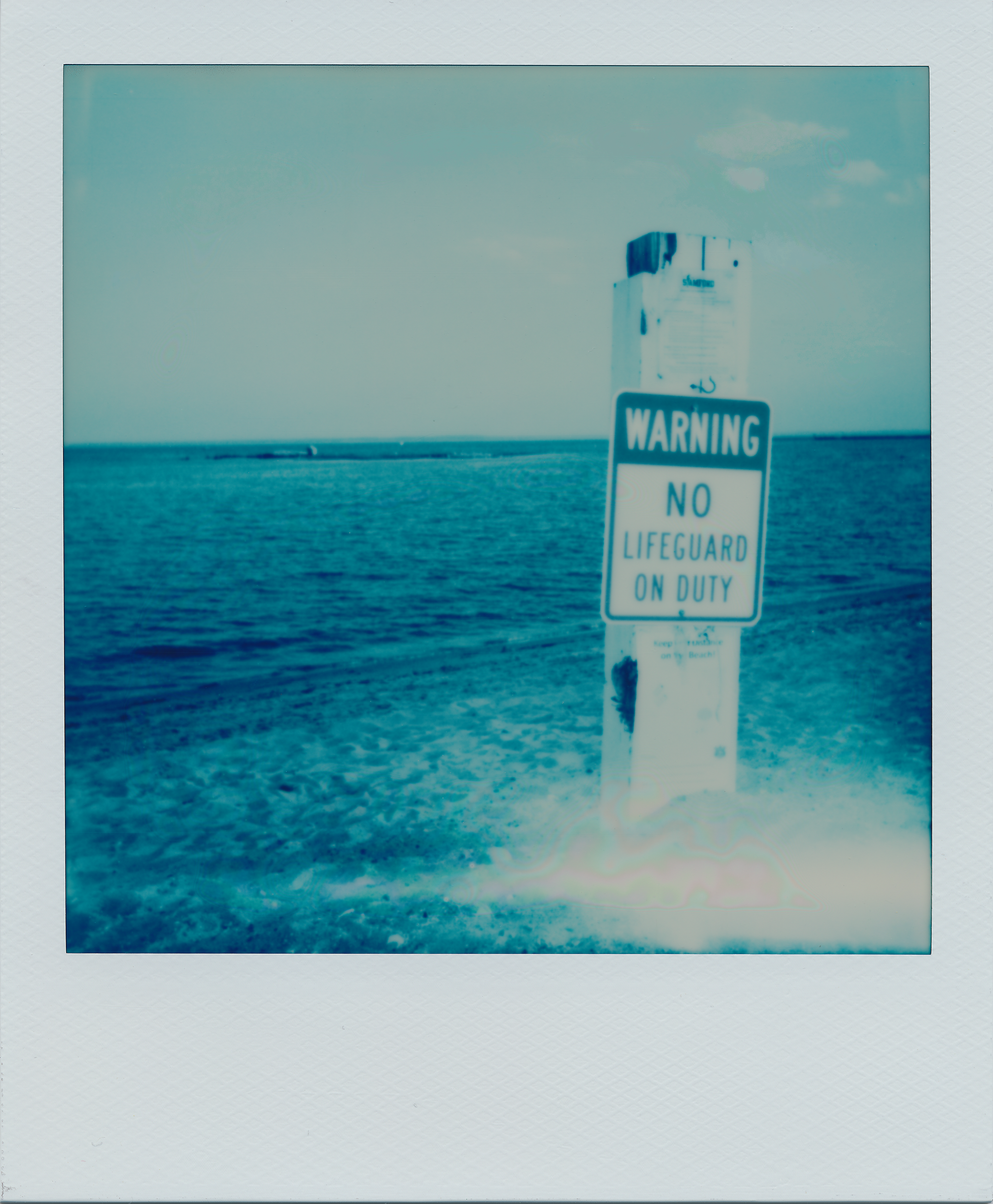 Same thing happened with exposures 2-8 of the pack, but I tried something different to get the camera to eject the photos. After each shutter CLICK-JAM occurred, I held the One600 camera under my jacket and opened it just enough to simulate and provoke the initial dark-slide ejection. IT WORKED! But, since it was not completely dark under my jacket, a light flare was produced at the bottom of each Blue 600 instant photo.
