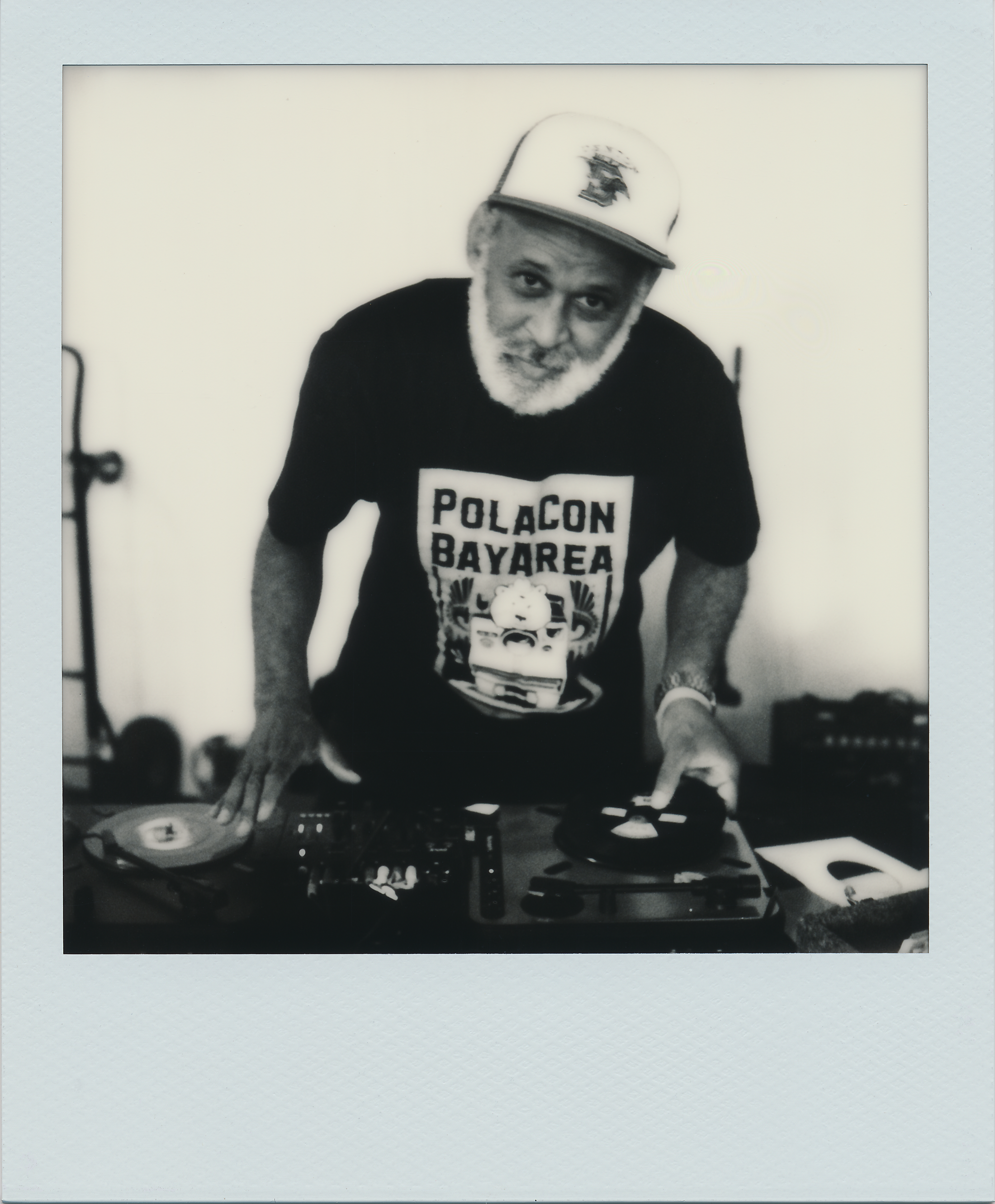 As I walked into PolaCon, I popped a pack of Polaroid 600 Black&White film (8 exposures) into the Polaroid 680ES SLR camera I was planning to use for the day. Without planning it that way, turned out the first pack was all guys with cameras, and one with vinyl turntables.