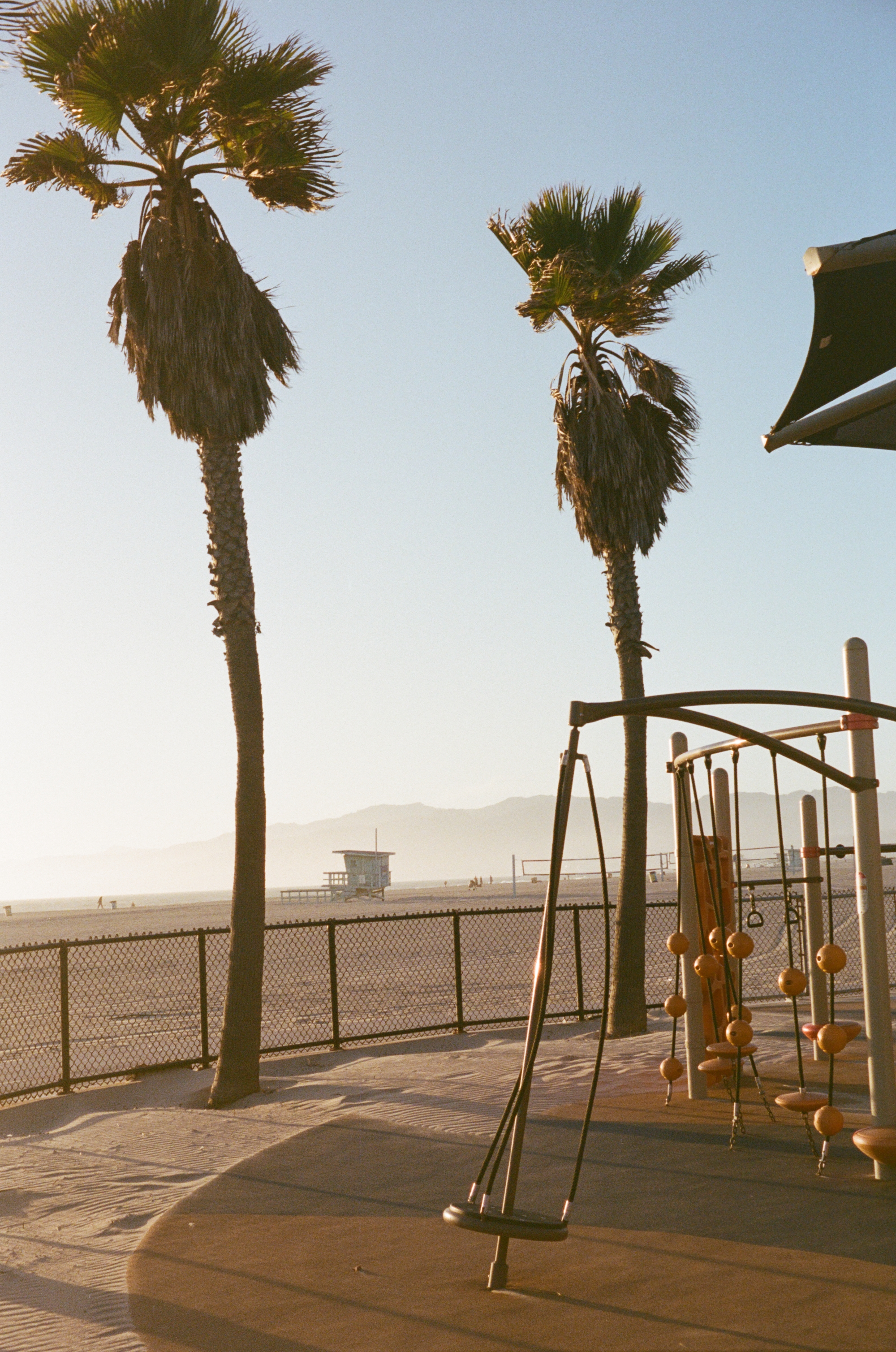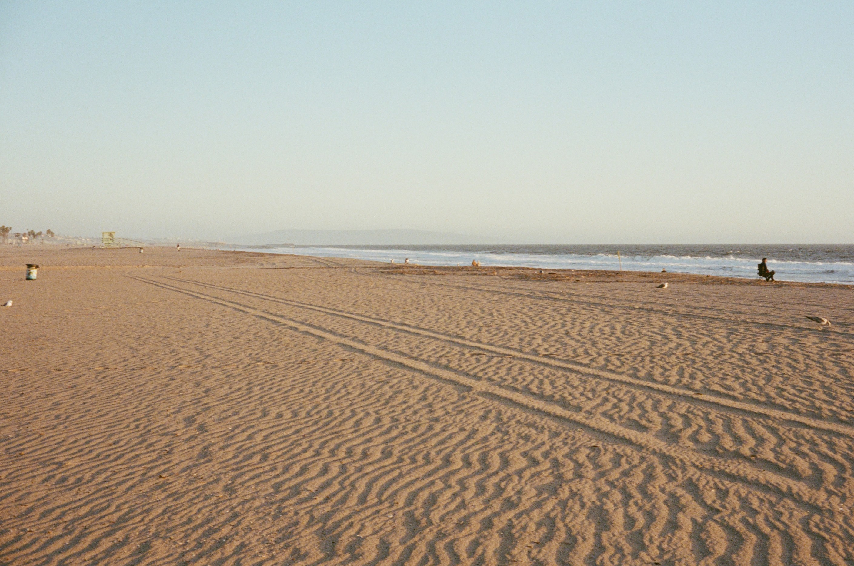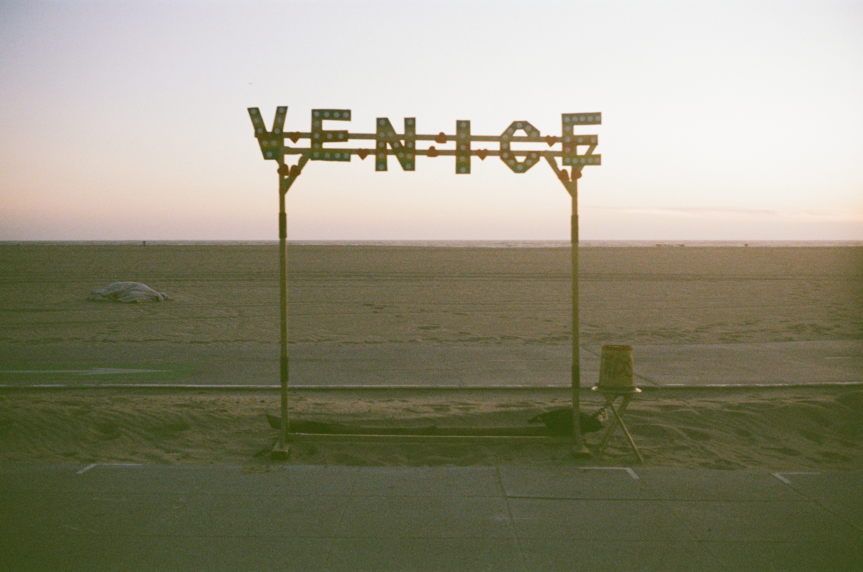 Here are the best of the rest of the roll (my faves), as the golden hour faded to dusk, and the warm tones of sunset cooled and darkened into evening. After loading the camera and taking my first shot through the windshield, I stepped out of my car onto the miniature sand dunes that inevitably form on windy days in the parking lots of Venice Beach. I smiled, took a shot of the mini-dunes at my feet, and looked around for subjects waiting to be captured by the Rollei 35B…