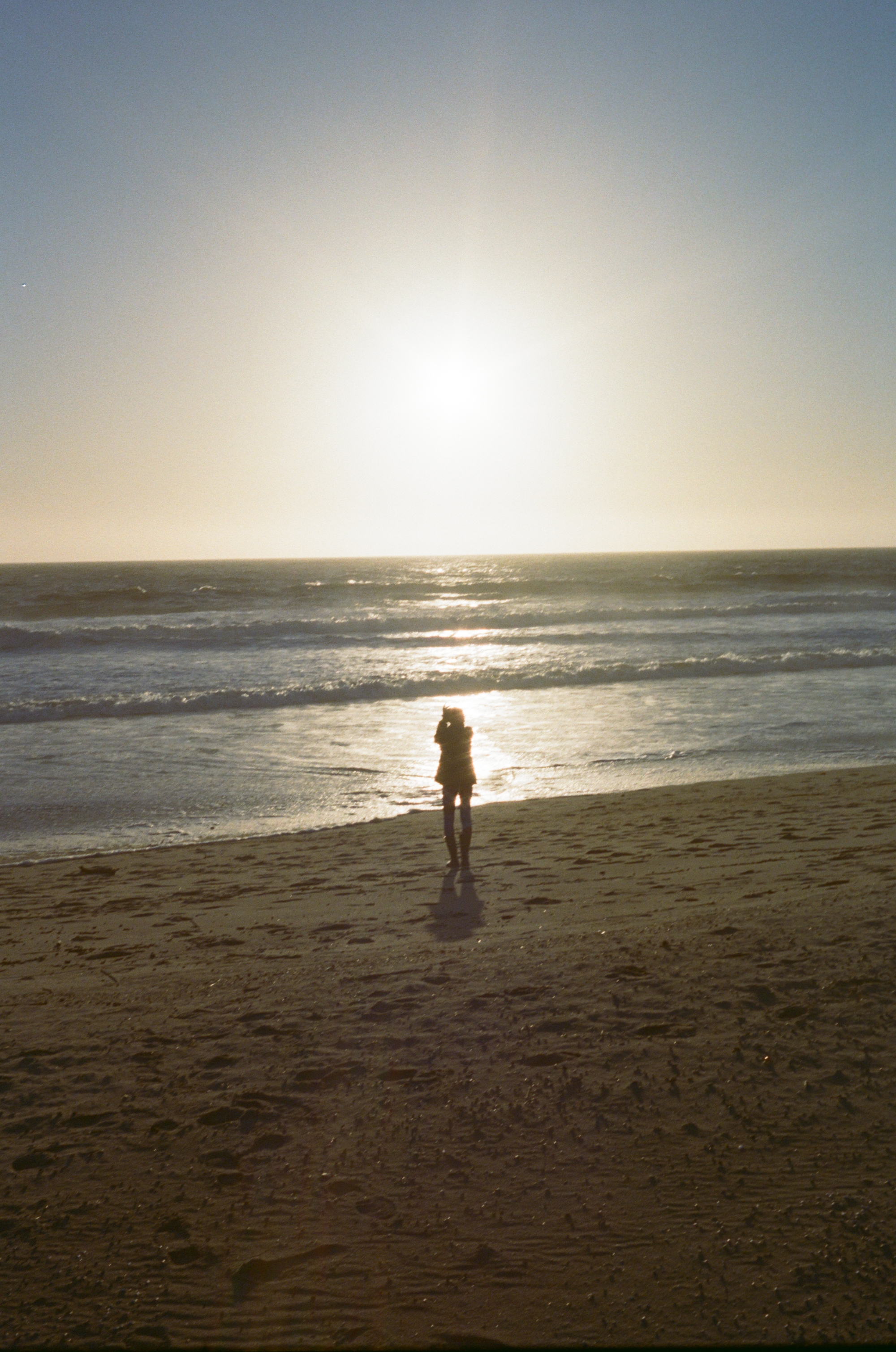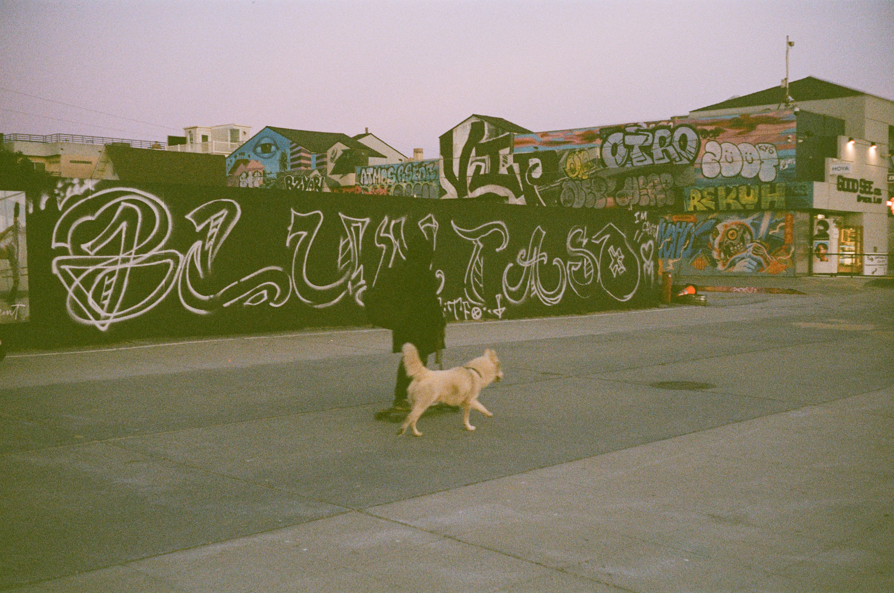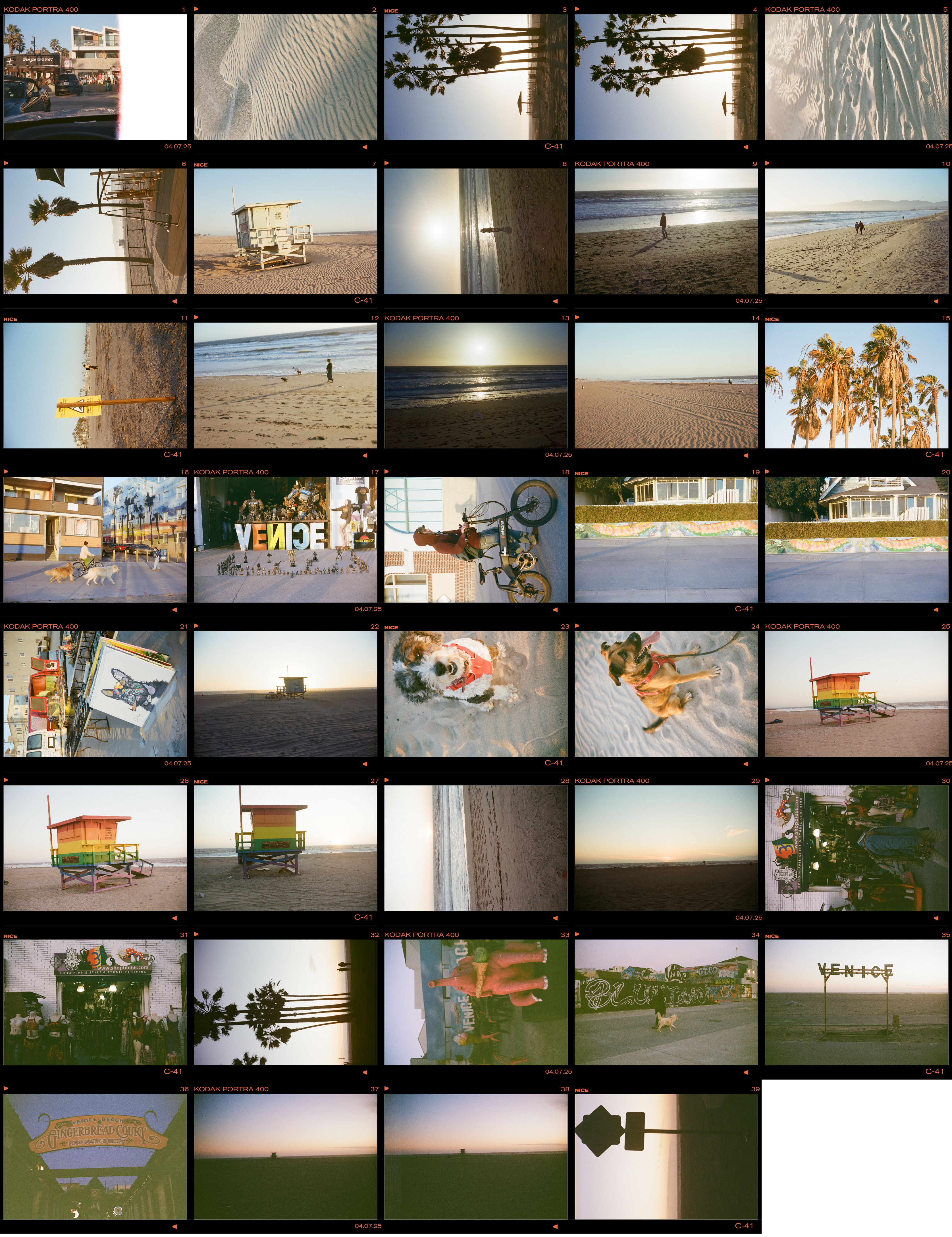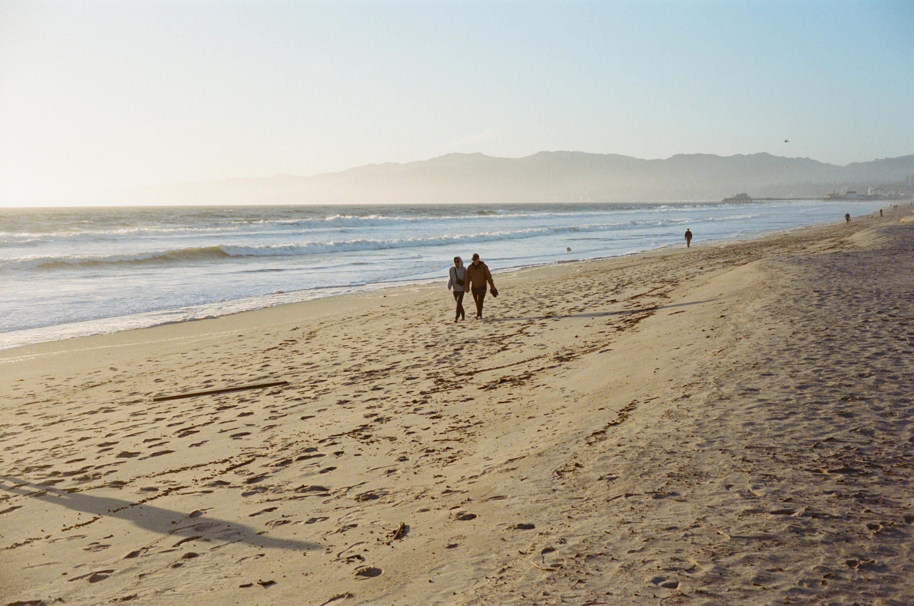 Here are the best of the rest of the roll (my faves), as the golden hour faded to dusk, and the warm tones of sunset cooled and darkened into evening. After loading the camera and taking my first shot through the windshield, I stepped out of my car onto the miniature sand dunes that inevitably form on windy days in the parking lots of Venice Beach. I smiled, took a shot of the mini-dunes at my feet, and looked around for subjects waiting to be captured by the Rollei 35B…
